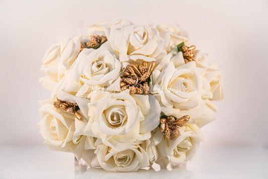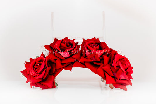 FULL BLOOM: Large Red Rose with Gold accent Floral Bun