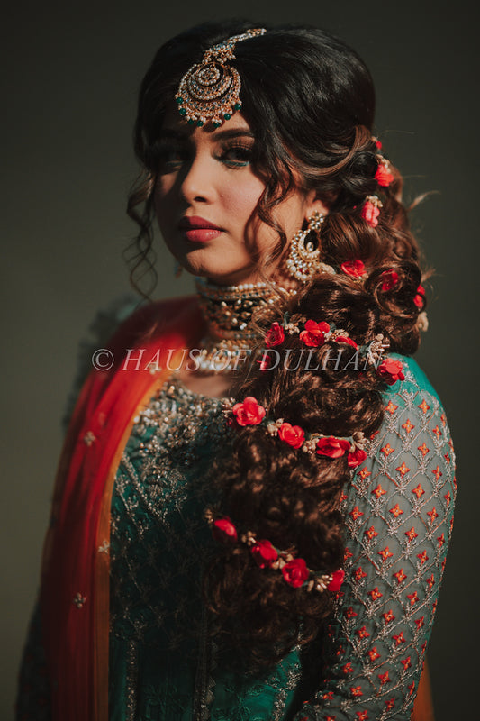 FULL BLOOM: Large Red Rose with Gold accent Floral Bun